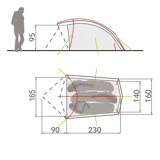 - Ambiance lumineuse adaptée : Pour une ambiance lumineuse agréable, la zone de couchage de la tente est équipée d'un matériau extérieur légèrement plus sombre que la zone de séjour.